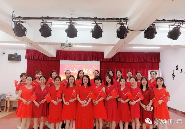 愛(ài)國(guó)情濃——實(shí)幼七園的全體教師,齊唱《我和我的祖國(guó)》,祝福我們偉大的祖國(guó)生日快樂(lè),祝愿我們的祖國(guó)繁榮昌,我們以大紅色獻(xiàn)禮,我們以幼教魂頌歌!
